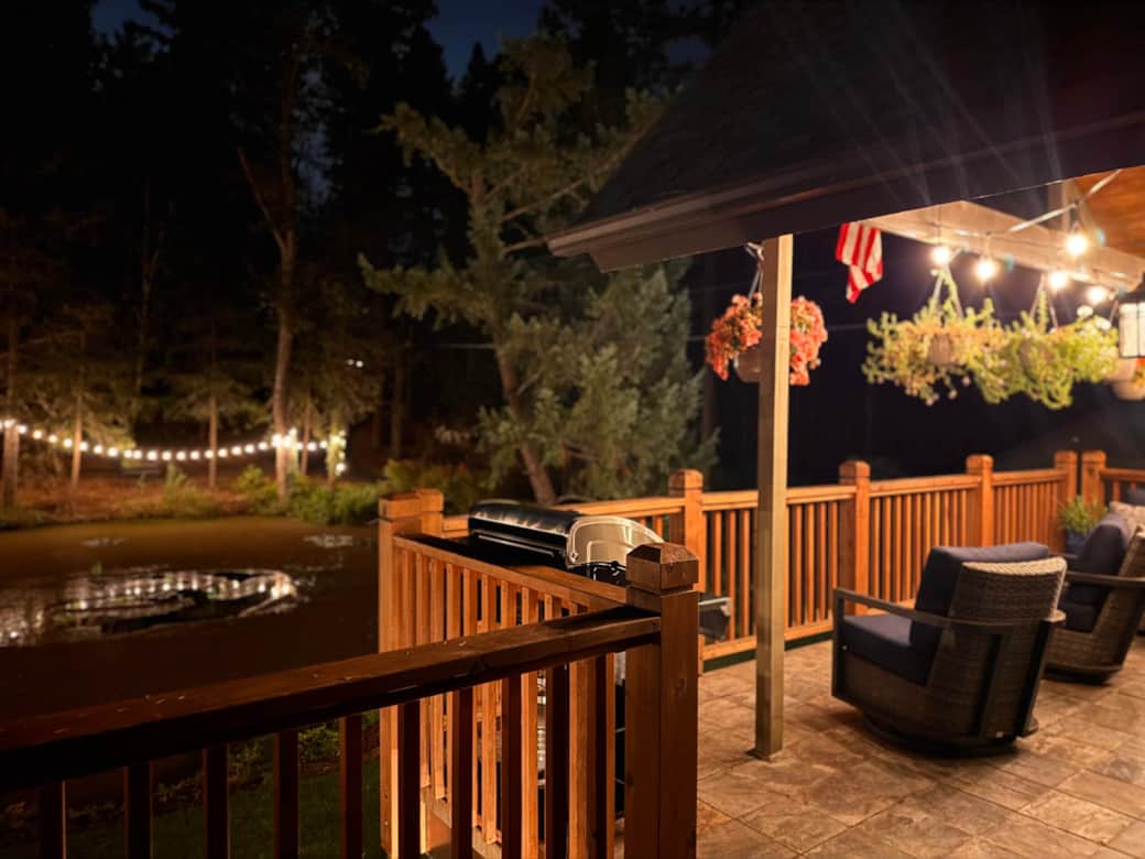 - This two-story home features soft water and offers 5 bedrooms with sleeping arrangements to accommodate up to 12 people, with the master and en suite on the main floor. With two dining tables and two living spaces, there is ample room to entertain inside. But the party continues outside with the deck that features a propane grill and seating. Below the deck, an outdoor dining table, hammock, and ping pong table await.